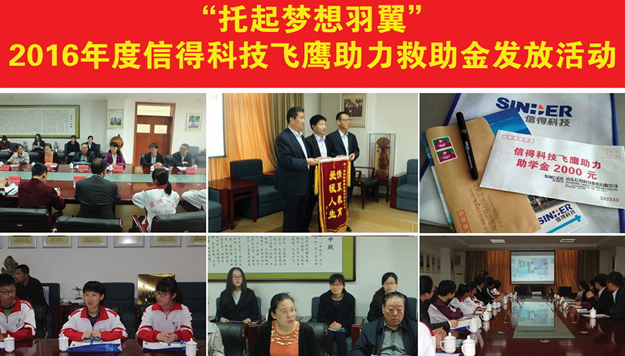 2017年2月,举行了开展新春慈善拍卖会,所得款项捐给“希望工程关爱基金”。4月,联合共青团诸城市委开展了2017年“点燃希望,筑梦起航” 德赢VWIN飞鹰助力救助金发放活动。